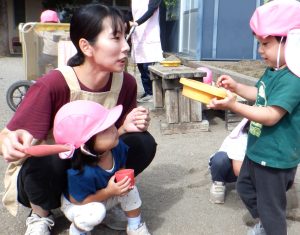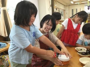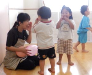 家ではやらないようなことができていて驚きました。(おやつや給食は?)とてもおいしくいただきました。