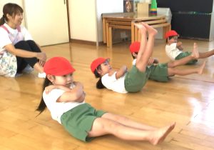 全員で同じ遊びをするのではなく、部屋の中で体を動かしたり、
