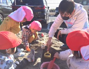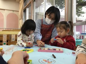 ぐんぐん組の子たちは人数が多いのに、少ない先生たちで動きを共有しながら見ていて、大変なお仕事だとあらためて思いました。やりたいことに合わせて活動するのは子どもたちにとってストレスが少なく、楽しく過ごせているように思いました。