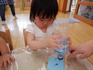 七夕飾りの製作で、たくさんのスタンプ遊びをしました。