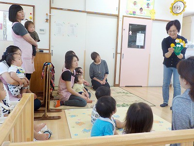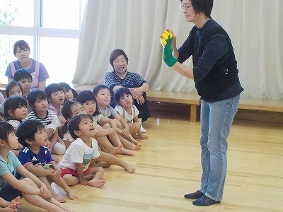 二か月に一度、こどもたちに楽しい手遊びやお話をしてくれるボランティアさんが来てくれます。