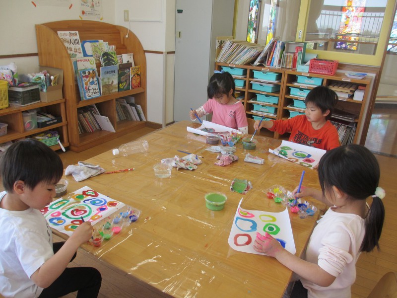 筆を洗う水入れの色の変化を観察したり楽しんでいました。