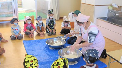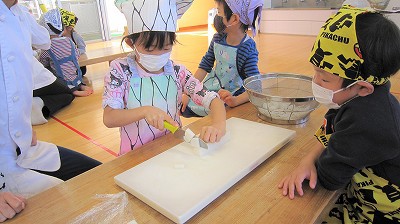 よ~くこねると、もっちもちになるから、みんながんばって!!