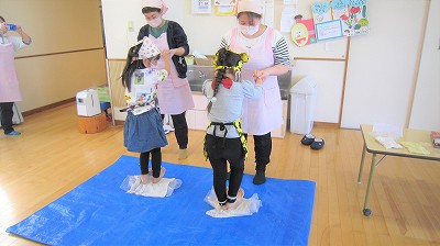 仕上げに先生達もふみました!子ども達は「がんばってー!」と応援してくれています。