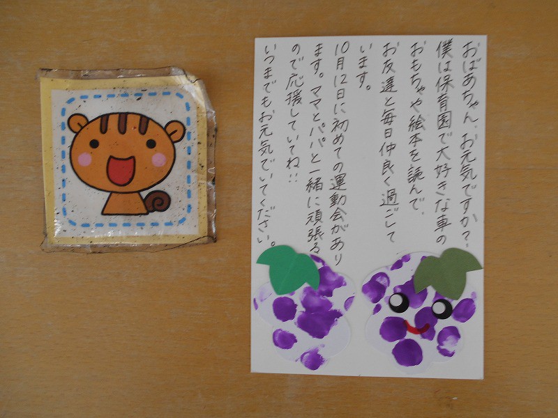 ちょんちょん、と指スタンプでぶどうを作ったよ