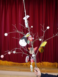 まずは園長先生がまゆ玉飾りについてお話してくれました。