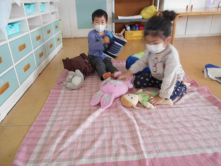 「赤ちゃん、おねむなのね。お布団に寝ようね。」