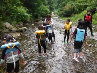 川では、現地のスタッフさんと一緒に生き物探しです。