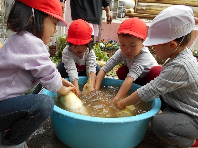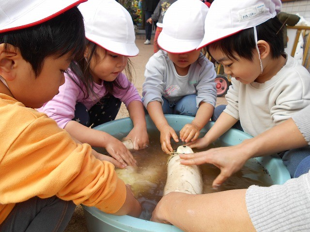 「大根ってどうやって掘るの?」「楽しみだね!」
