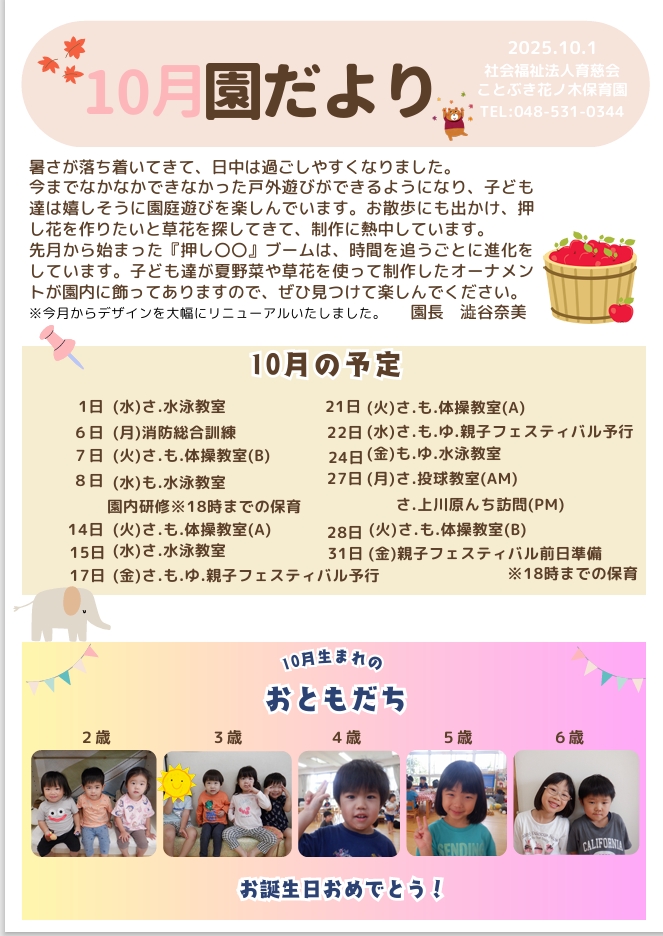 保護者の皆様と一緒にお子様の成長を喜び合える場所、そして卒園してからも保育園のことを忘れず、何かの時に頼れる場所として思い出してもらえる所でありたいという願いを込め、「保育園を心のふるさとに」という言葉を大事にしていきたいと思っています。